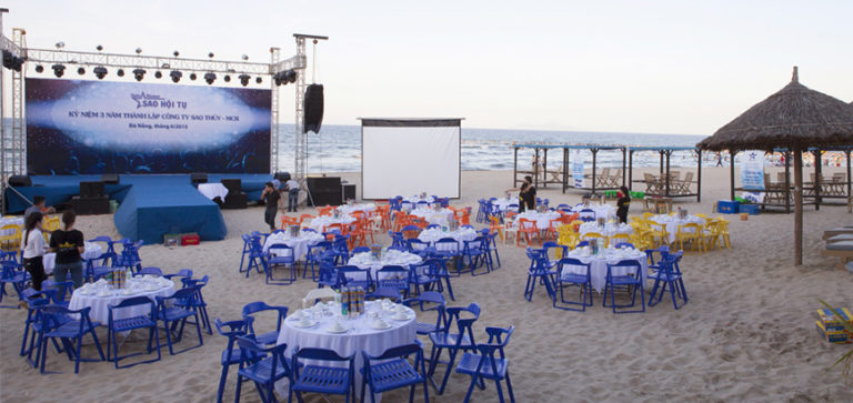 Tổ chức gala dinner có thể tổ chức ngoài trời với không gian là bãi biển để cùng nhau tận hưởng không khí của buổi tiệc với tiếng sóng biển rì rào. Hoặc tổ chức trong hội trường với không gian ấm áp với đèn điện và sân khấu được setup lộng lẫy.